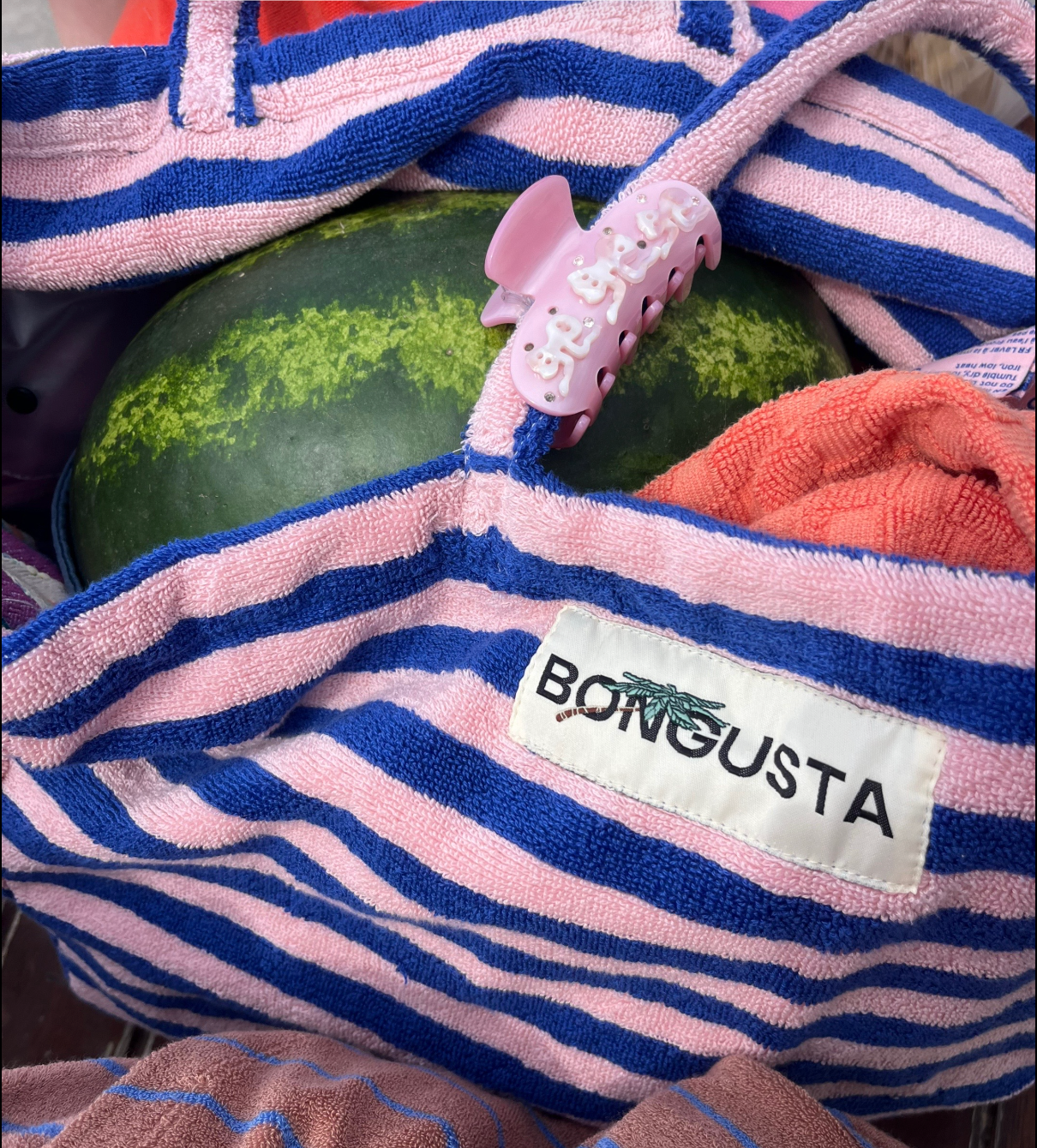 Available in all our signature Bongusta colors and stripes. We recommend washing the bag before use.